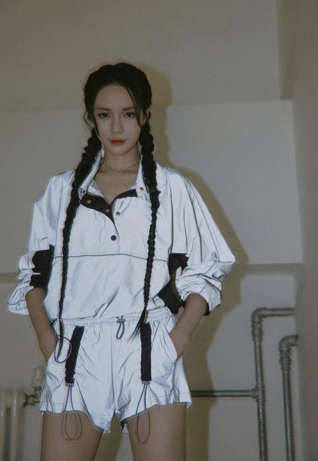 想耍帅就试试沈梦辰的这身夜光套装,银色与夜光粉的结合让这身套装能在夜里折射出一定的光彩,让人联想到夜空中最明亮的星,上下保持风格一致更有潮流气质,又美又飒。