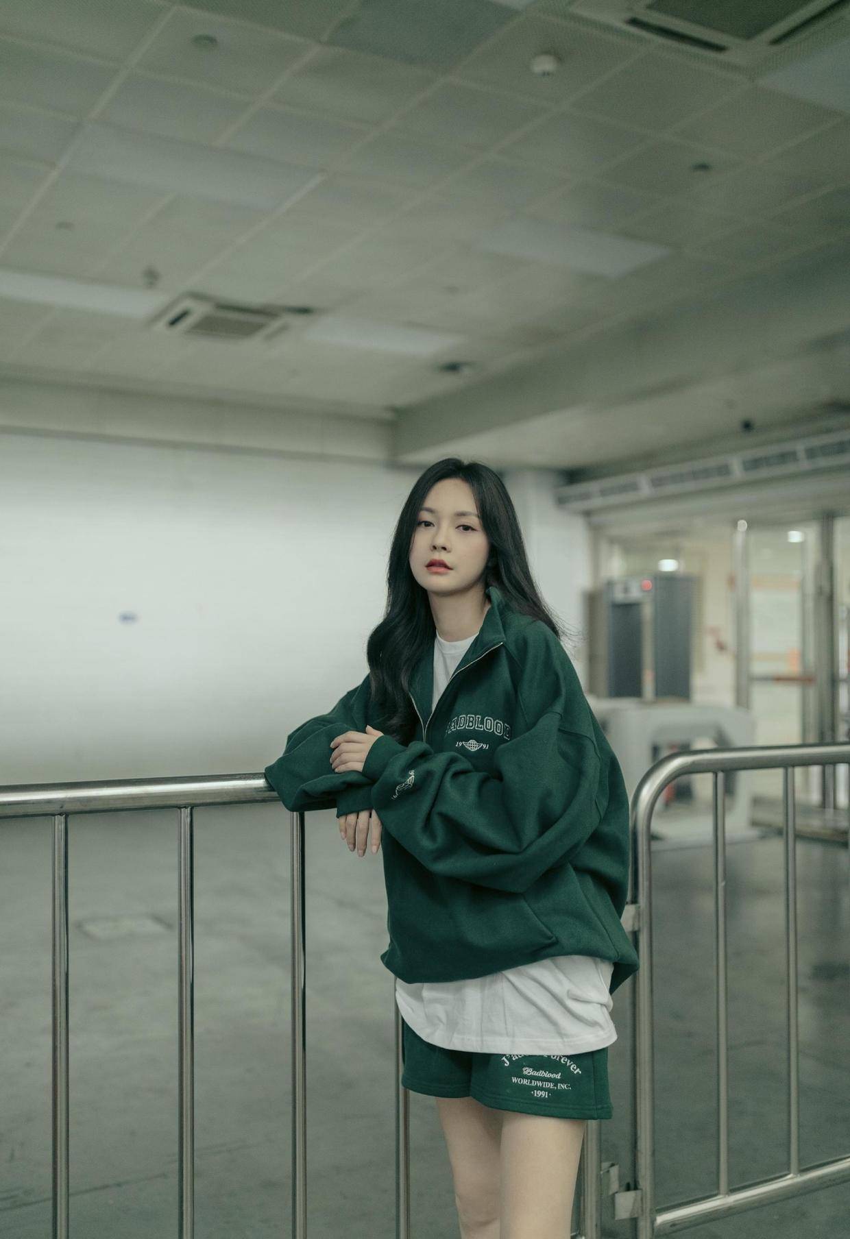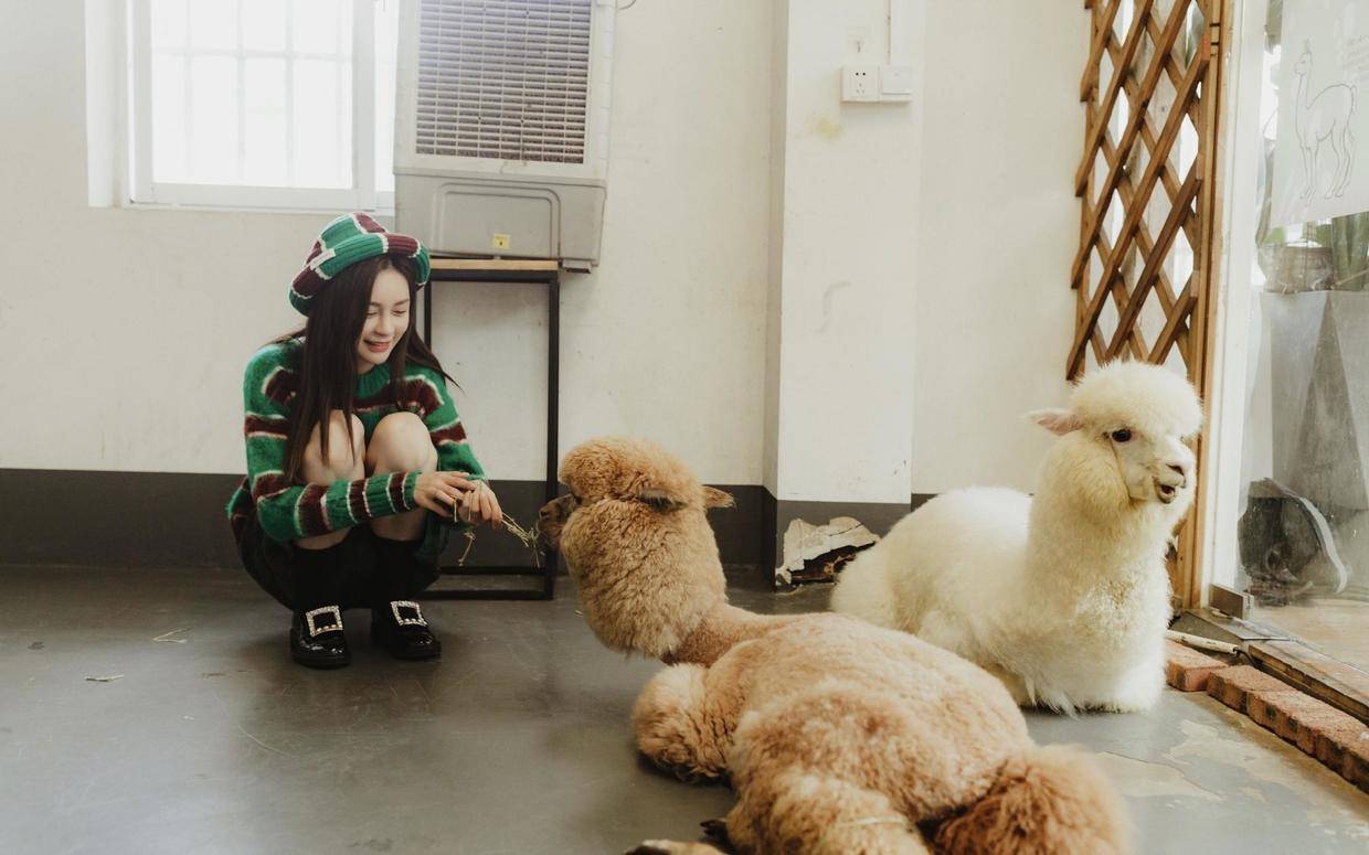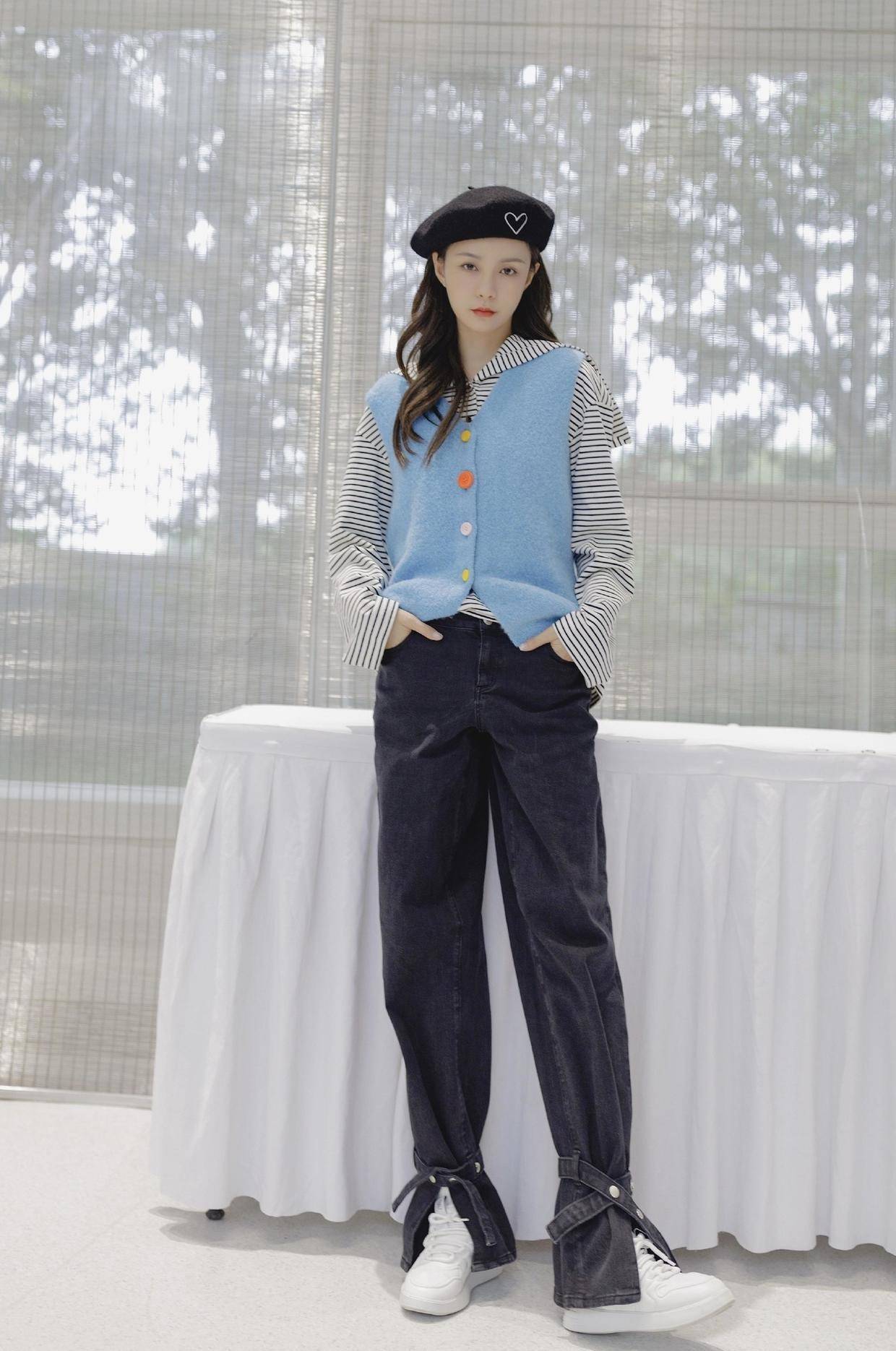 这次她身穿绿色系毛衣套装亮相凹造型,加上一顶贝雷帽加以修饰,整个人看起来就像是小姑娘一样,简直太漂亮。