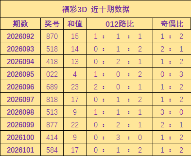 开奖回顾:福彩3D上期奖号为584,其中奖号012路比为0:1:2,和值为17,奇偶比1:2。